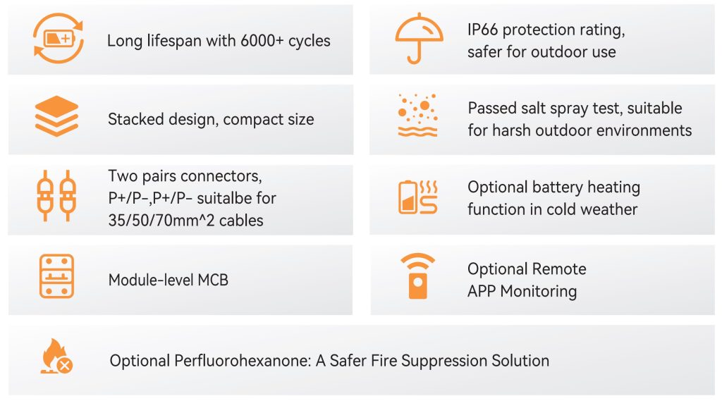The SUMRAY L16 Series battery is specially designed for residential applications, delivering enhanced and dependable energy storage solutions. Each battery pack is a standalone unit with an integrated Battery Management System (BMS), featuring high-performance LFP battery technology, it boasts a maximum 250A charging/250A discharging rate. The battery is floor —make it easy to set up, while its expandability allows for connection of up to 3 modules in parallel, reaching a total capacity of 48 kWh.